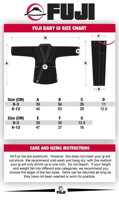 Prepare your future Grappler early with a uniform ideal for newborns and early toddler-aged children. Made of a soft FUJI Premium Cotton Blend for comfort and those on-the-go grapplers. Each uniform features a Velcro and tie enclosure and a free white belt