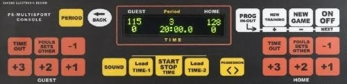 Comprehensive Scoring: Tracks scores (0199 per team), fouls, sets, possessions, rounds, periods, and timeouts with luminous indicators.